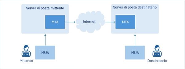 L’MTA è quindi un componente del servizio di posta elettronica che si occupa della trasmissione dei messaggi email dal mittente al destinatario. I componenti MTA sono presenti sui server di posta del mittente e del destinatario e inoltre possono essere configurati degli MTA intermedi, ad esempio per gestire le liste di distribuzione.