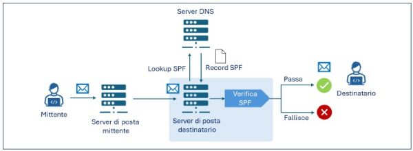 In questo modo, il server di posta elettronica del destinatario quando riceve un messaggio da un determinato dominio può interrogare il relativo record SPF e autenticarne la provenienza verificando che l’indirizzo IP dal quale è stato ricevuto il messaggio rientra tra quelli autorizzati a inviare messaggi per conto del dominio.