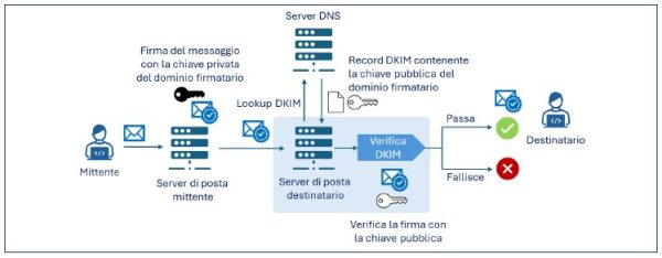 • il mittente deve configurare il proprio server di posta per generare le firme DKIM e pubblicare il record DKIM nel relativo server DNS;